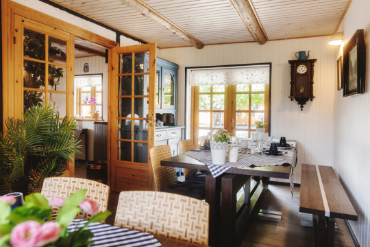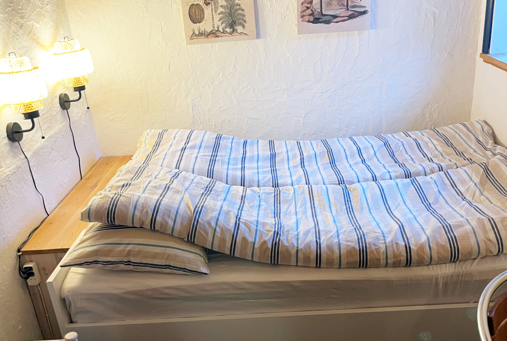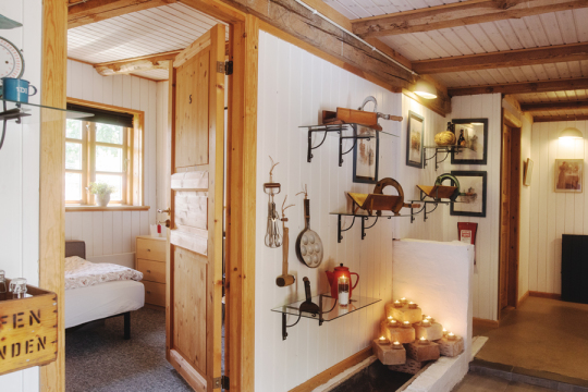 Foruden vores reception ligger der to mindre værelser i Laden, som primært er til enkeltpersoner, men hvor der også er plads til to. Separat bad og toilet til hvert værelse på gangen.